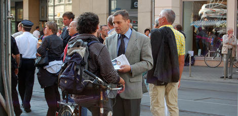 Der Fraktionsvorsitzende Udo Pastörs wurde von seinem Stellvertreter Tino Müller und vom agrarpolitischen Sprecher der Fraktion Raimund Borrmann begleitet. Gemeinsam mit zwei Fraktionsmitarbeitern führten sie Gespräche mit anwesenden Milchbauern, aber auch mit Passanten. An diese wurde auch ein Flugblatt verteilt, welches die Position der NPD-Fraktion darstellt.